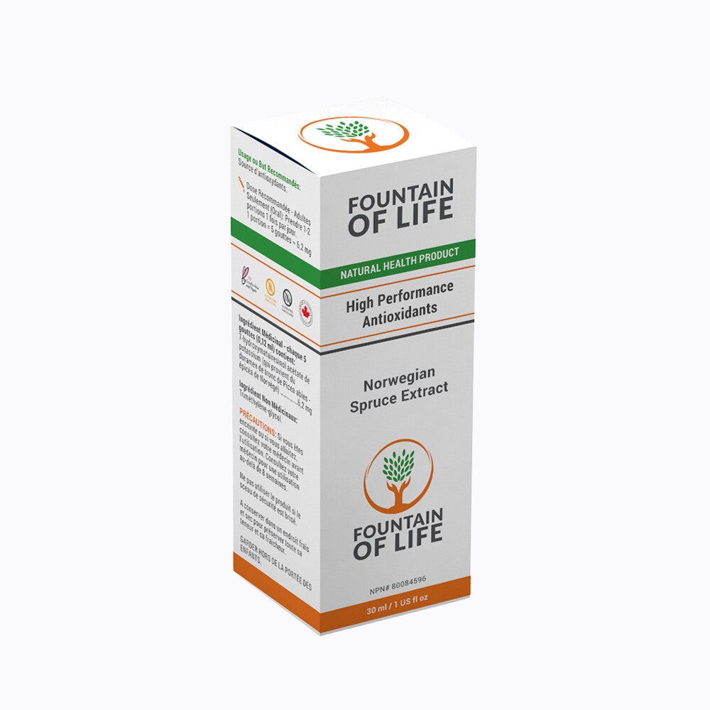 Fountain of Life captures the power of the Picea Abies extract from the Norwegian Spruce growing in Northern Finland. Thriving under the harshest of conditions, this tree has adapted to the extreme environment in which it lives. Researchers discovered that this tree contains the most powerful source of lignans in nature. Lignans are antioxidants found in the cell walls of plants.